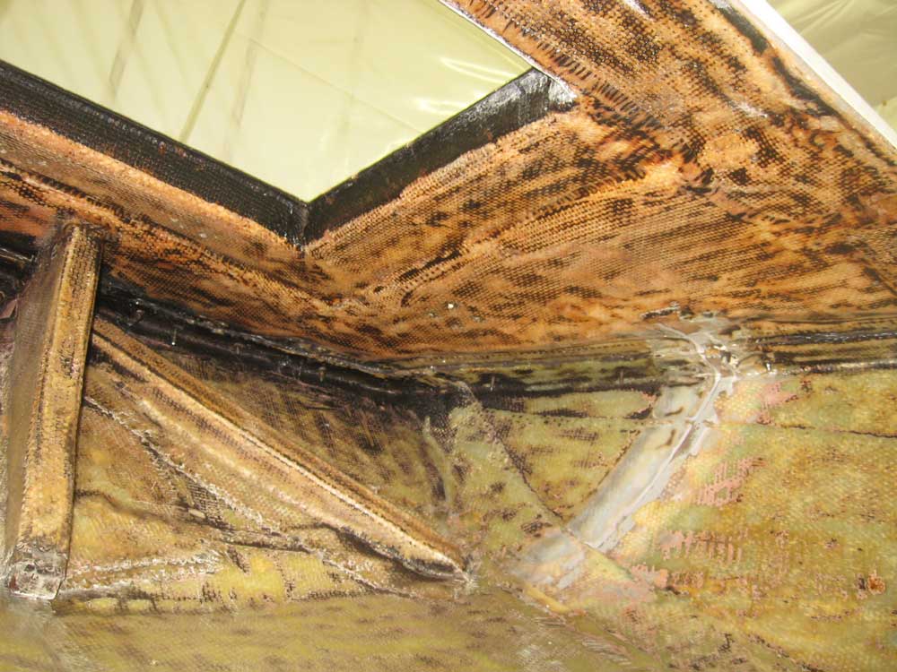 layer of roving was completely resin-less and dried out from