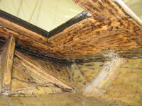 badly damaged area on the starboard hull, up high near the