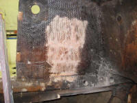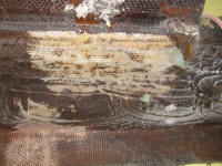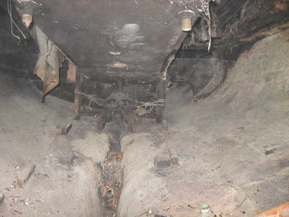 inside of the cabin trunk (where it was charred and