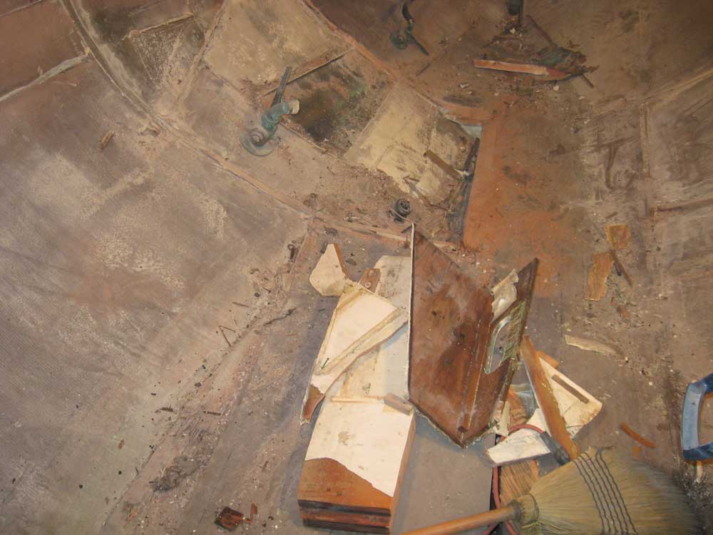 and the remains of the adjacent bulkheads and head platform.