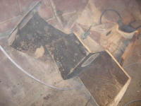 sand. THe blackened laminate of the cabin trunk
