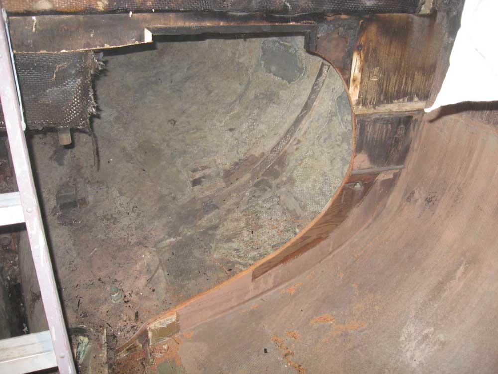 head bulkheads; the tabbing came free from the deck