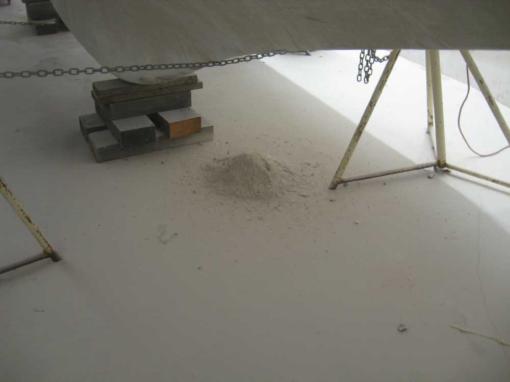 some of the dust out one of the old through hull holes.