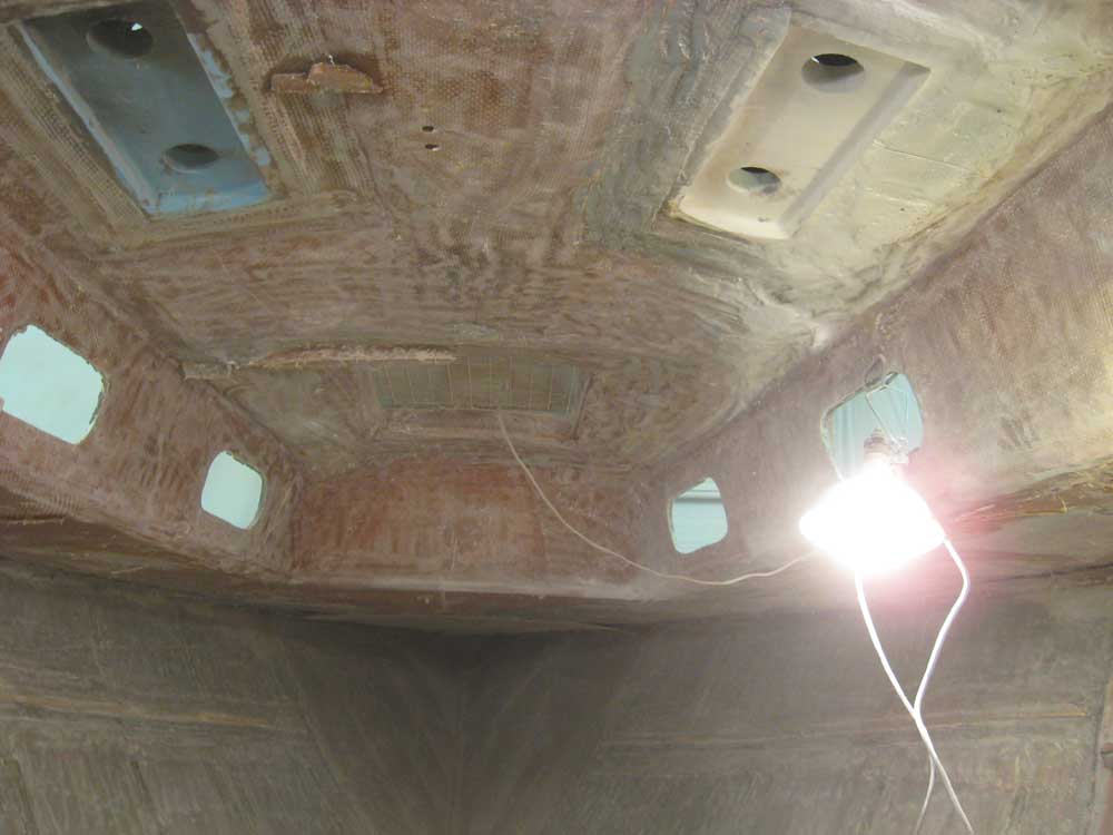hull on both sides, from the cabin sole/centerline to the